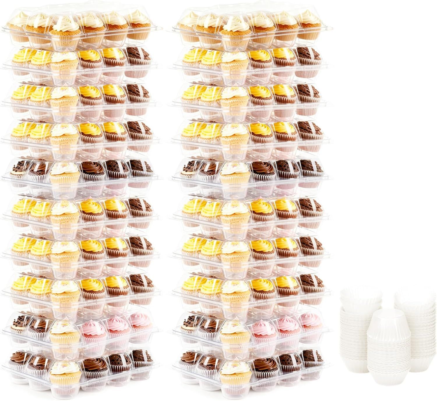 Home > 12 Count Cupcake Containers, 20 Pack Stackable Cupcake Carrier with 250 Pack Cupcake Liners, Plastic Cupcake Boxes Holders