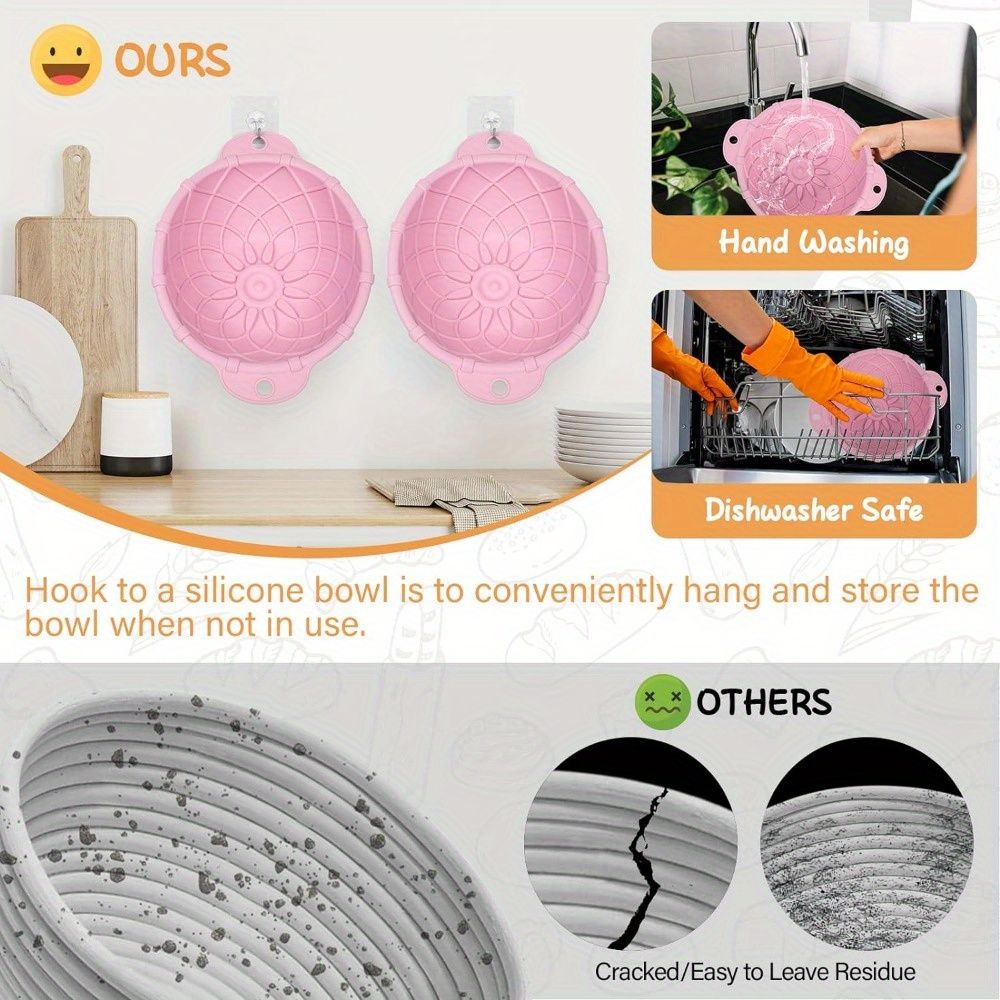 5.Equipped with a hook for hanging after use to save space and improve drainage. The bottom petal pattern helps shape your dough into perfect round loaves, giving them an attractive appearance.