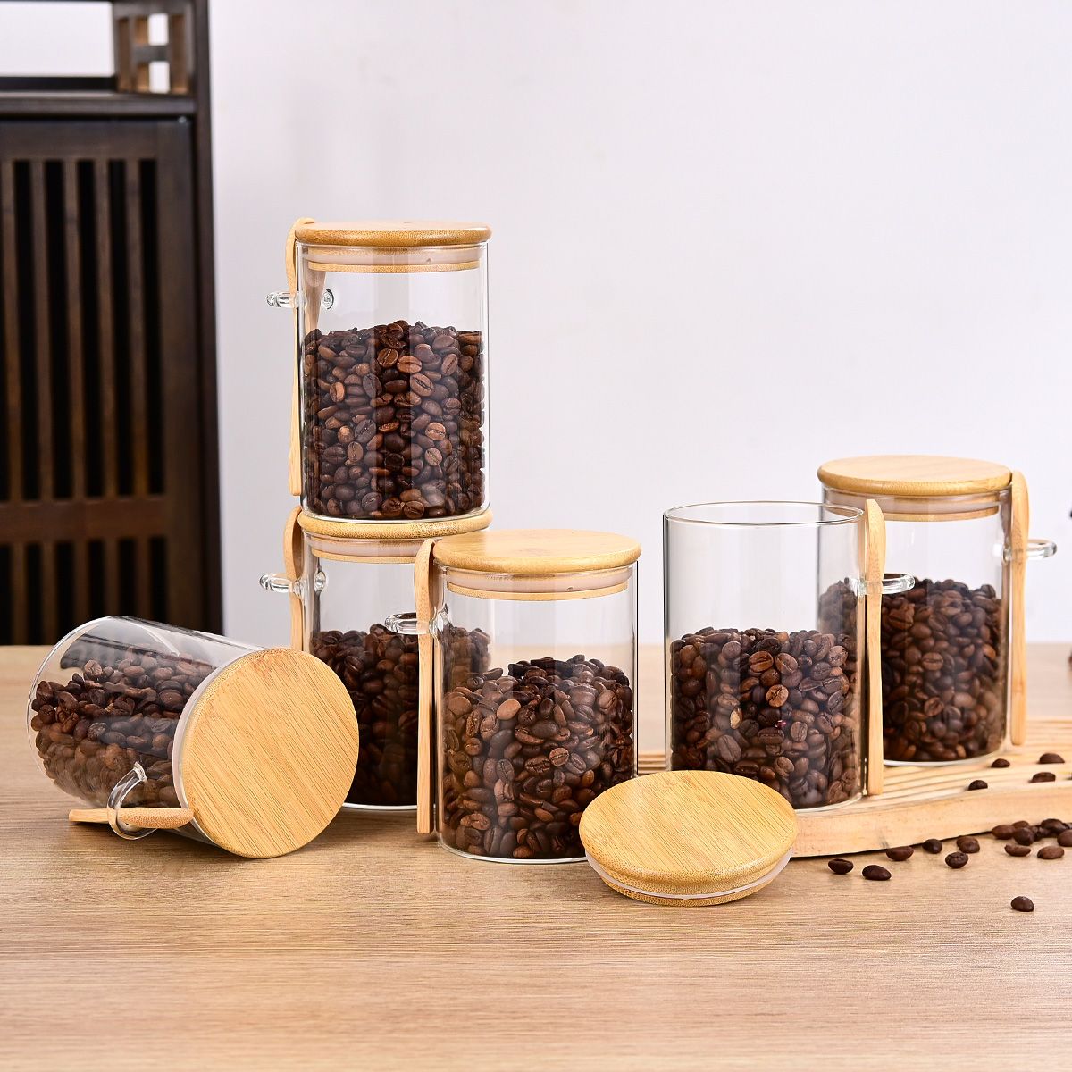 6 PCS glass storage jars for storing coffee, candies, seasonings, and tea leaves 6 PCS glass storage jars for storing coffee, candies, seasonings, and tea leaves 6 PCS glass storage jars for storing coffee, candies, seasonings, and tea leaves