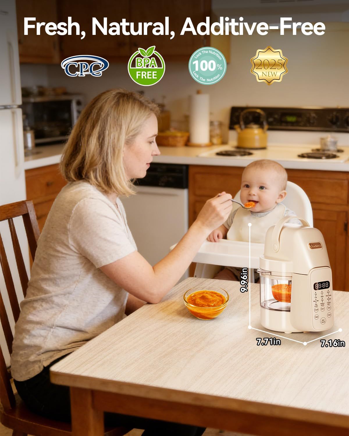 3. Customize Your Ideal Food: Baby food maker is a supplement steamer and blender in one device. Baby food maker, Steam, blend, in one glass jar—no transfers! Sealed steam cooking locks in 90%+ nutrients. Makes smooth purees to soft chunks for all stages.
