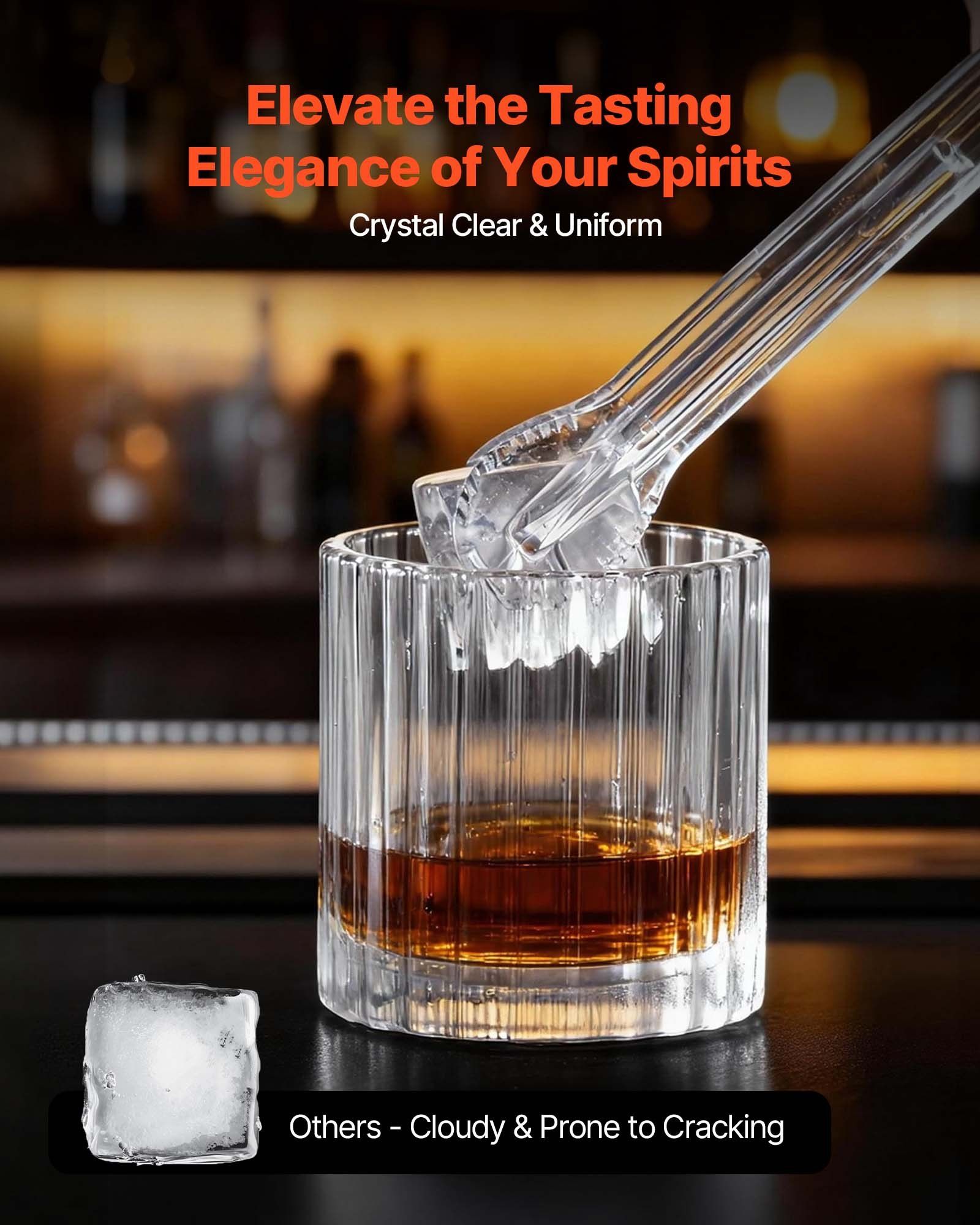 3.Drawer-Style Ice Access: The drawer-style ice basket design allows for flexible ice access. The 2.5 lbs basket stores 10–12 cubes, ideal for bars, ensuring high-quality slow-melt ice for whiskey and drinks