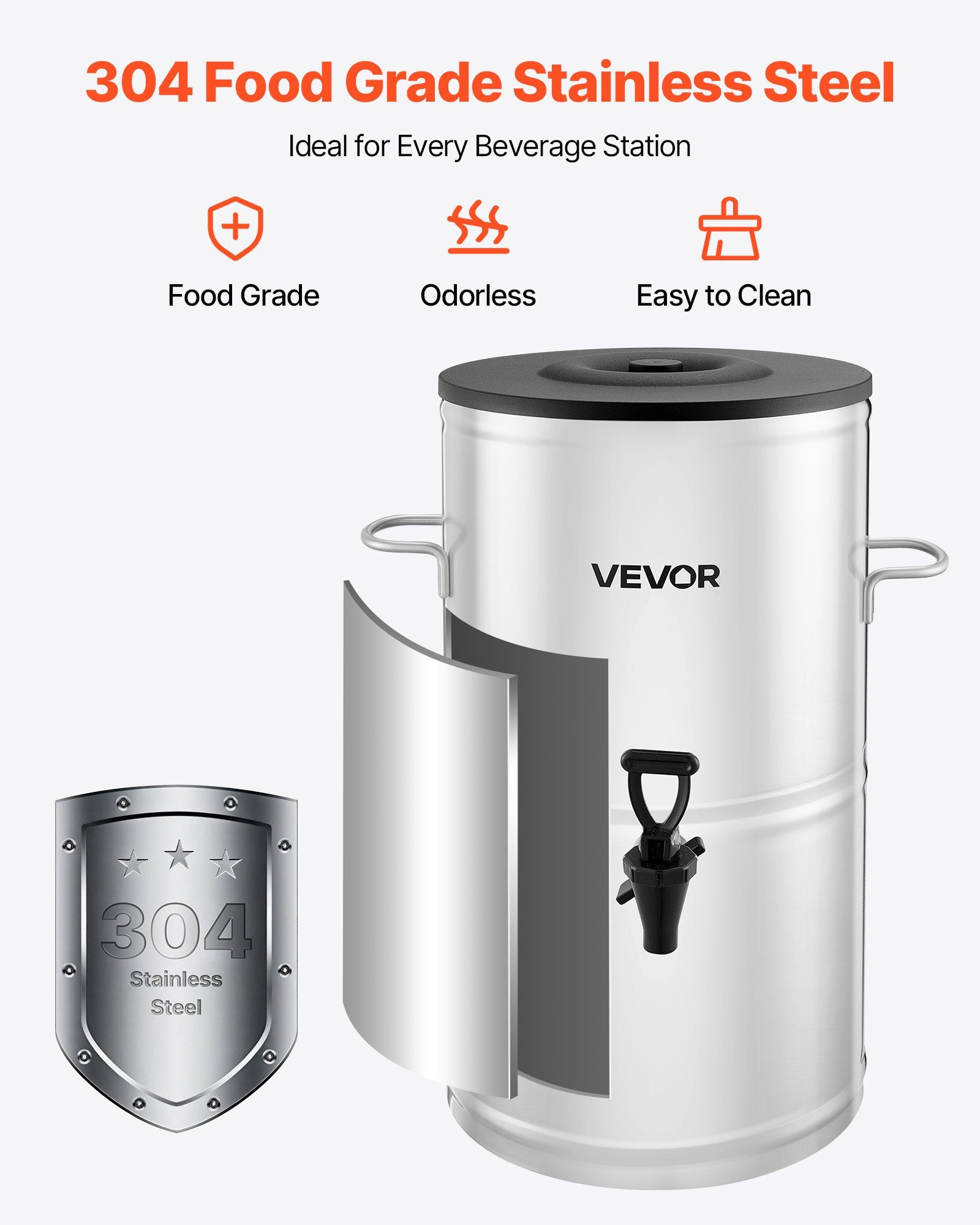 Ice Tea Dispenser, 4 Gal/15L 304 Stainless Steel Beverage Dispenser with Spigot & Handle, Suitable for Hot and Cold Drinks